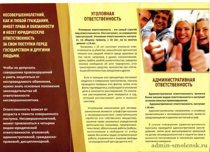 Несовершеннолетние могут привлекаться к четырём видам юридической ответственности