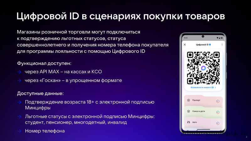 Магазины розничной торговли могут подключиться к подтверждению льготных статусов, статуса совершеннолетнего и получения номера телефона покупателя для программы лояльности с помощью Цифрового ID.