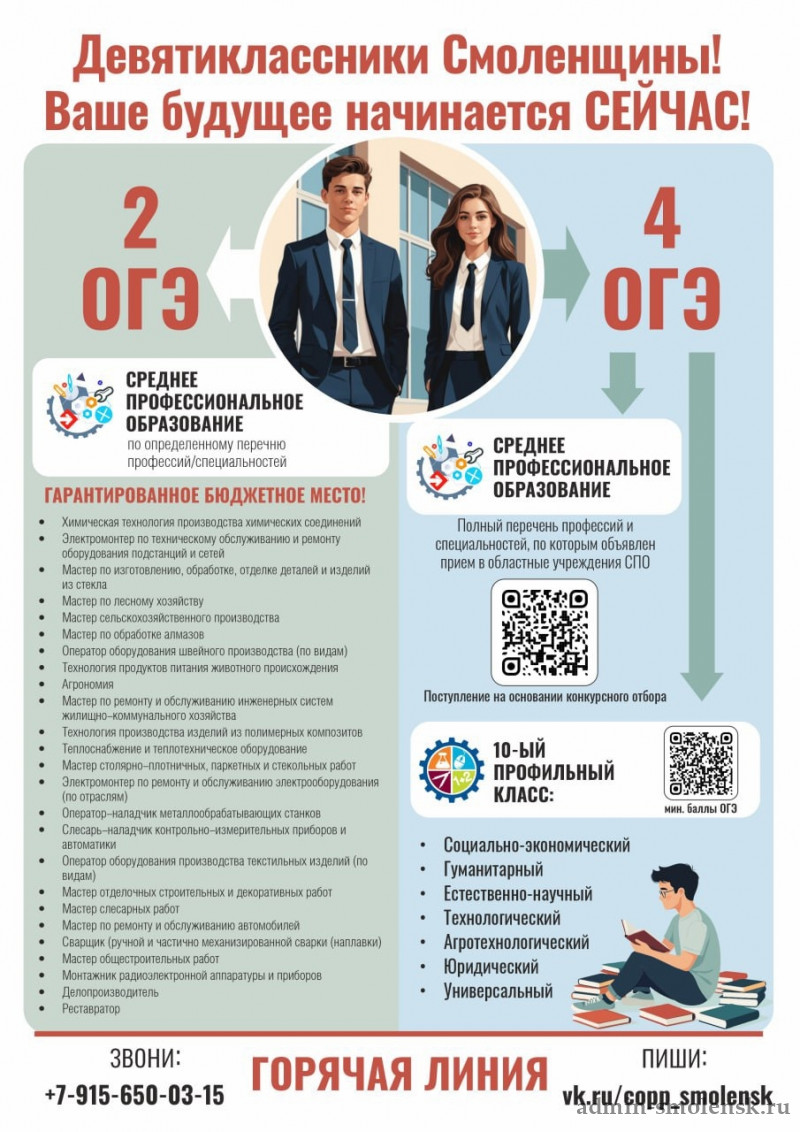 Девятиклассники Смоленщины! Ваше будущее начинается сейчас! Сделайте правильный выбор!