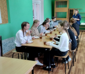 Директор школы Вера Андреевна Харичкина подчеркнула, что в столовой работают опытные повара, которые ✔ тщательно проверяют качество продуктов, ✔ ответственно относятся к процессу приготовления, ✔ соблюдают все санитарные нормы.