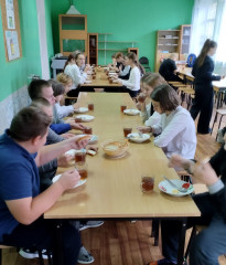 Марина Александровна поинтересовалась у детей, довольны ли они школьным питанием, нравится ли им меню. Дети сказали, что еда в школьной столовой им нравится, а сегодня на завтрак была их любимая запеканка. Пустые тарелки после завтрака стали лучшим тому подтверждением.